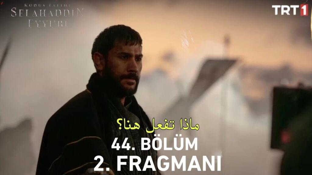 يعرض مسلسل صلاح الدين الأيوبي الحلقة 44 الموسم الثاني باللغة التركية كل يوم اثنين على قناة TRT التركية في تمام الساعة 8:00 مساء بتوقيت تركيا ومصر وفي الساعة 9:00 مساء بتوقيت السعودية، كما يتم إعادة الحلقة مترجمة باللغة العربية كل يوم ثلاثاء في تمام الساعة 9:00 مساء بتوقيت القاهرة وفي الساعة 10:00 مساء بتوقيت مكة المكرمة، ومن الممكن مشاهدة أحداث جميع الحلقات عبر قصة عشق بأي وقت ومن أي مكان.