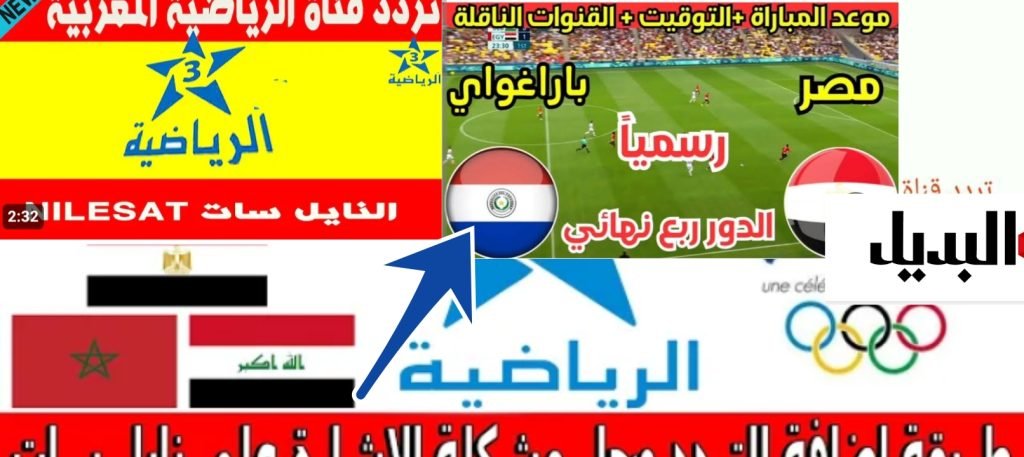 تردد قناة المغربية الرياضية Arryadia 2024 TNT لمشاهدة مباراة مصر وباراجواي مجاناً الآن على جميع الأقمار الصناعية، والتي تنطلق في تمام الساعة الثامنة من مساء اليوم الموافق 2 أغسطس 2024، حيث تدخل المباراة حيز الاهتمام من قبل المصريين بشكل خاص والعرب بشكل عام، بعد الأداء العظيم الذي قدمه المنتخب الوطني في المباراة السابقة أمام منتخب إسبانيا والذي انتهي بفوز المنتخب الوطني المصري على المنتخب الإسباني بثنائية احرزهما اللاعب الدولي ابراهيم عادل.