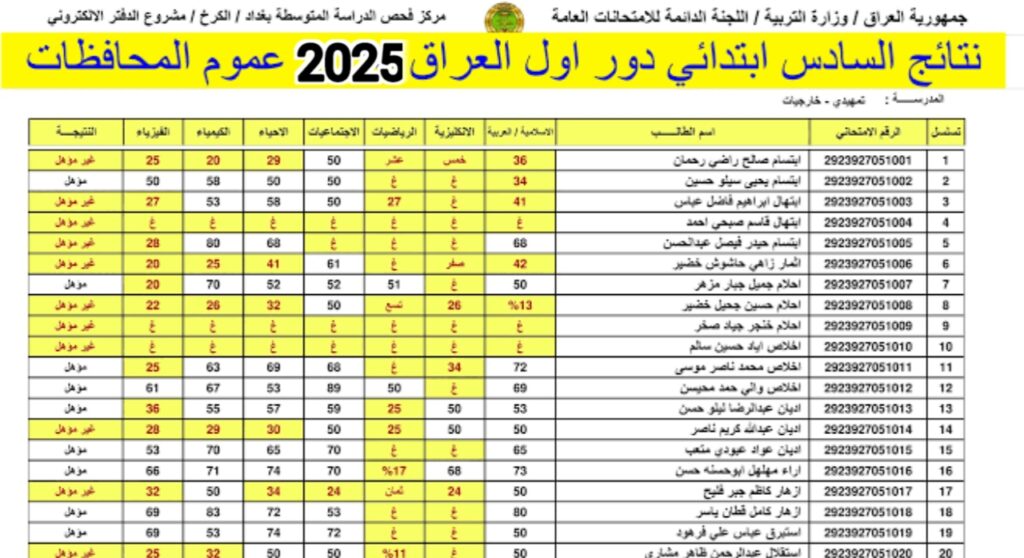 طريقة الاستعلام عن نتائج السادس الابتدائي 2025 في العراق