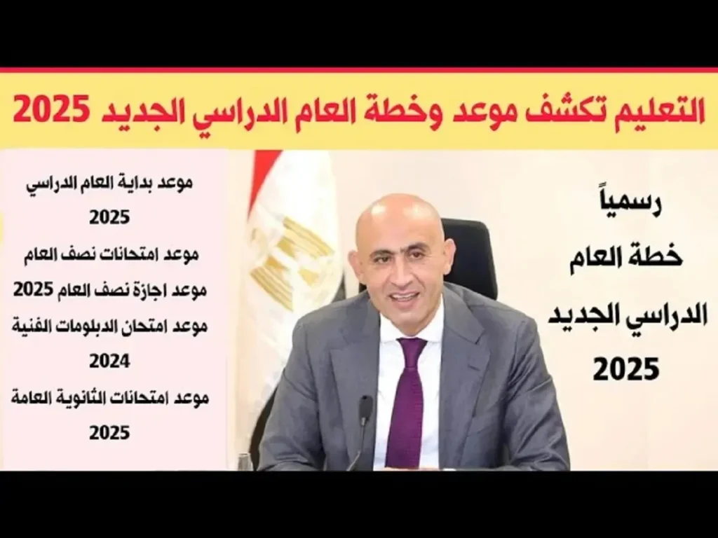 حددت وزارة التربية والتعليم المصرية موعد إجازة نصف العام الدراسي للطلاب 2025 بحميع المحافظات، والتي تنطلق في يوم السبت 25 يناير وتنتهي في يوم الخميس 6 فبراير 2025، وذلك وفقاً للجدول الزمني الذي حددته الوزارة، كما تبدأ دراسة الترم الثاني في 8 فبراير 2025 وتمتد فترة الدراسة للفصل الدراسي الثاني 16 أسبوعاً، لتنطلق أول أيام امتحانات الفصل الدراسي الثاني لجميع صفوف النقل الابتدائية والإعدادية في يوم السبت 24 مايو 2025، وذلك حسب الخريطة الزمنية المحددة.