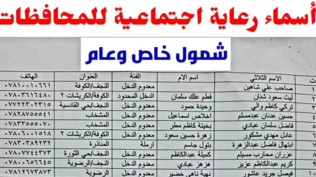 اسماء المشمولين برواتب الرعاية الاجتماعية
