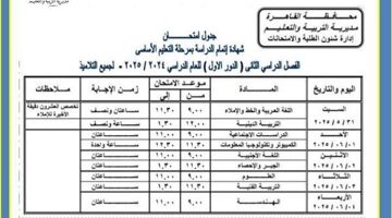 تاريخ النشر “الان” رفع جدول امتحانات الصف الثالث الاعدادي الترم الثاني 2025 || محدث من مديريات التعليم