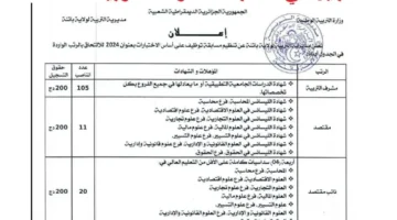 تاريخ النشر من هنا رابط التسجيل في مسابقة مشرف التربية 2024 بدولة الجزائر مع أهم الشروط والتخصصات المطلوبة