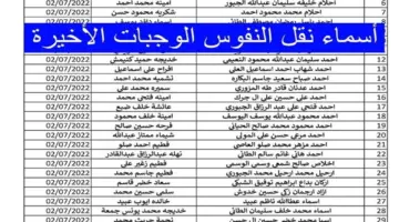تاريخ النشر استعلام أسماء المقبولين في نقل النفوس الوجبات الجديدة عموم محافظات العراق 2024 والشروط المطلوبة